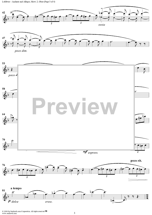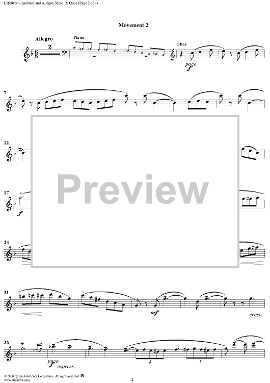 "Andante and Allegro - Oboe" Sheet Music by Charles Lefebvre
