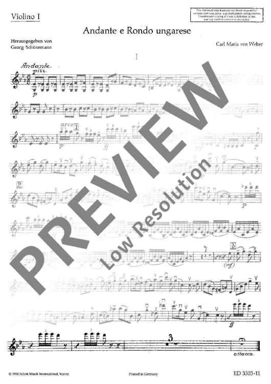 "Andante and Rondo ungarese - Violin I" Sheet Music by Carl Maria Von Weber