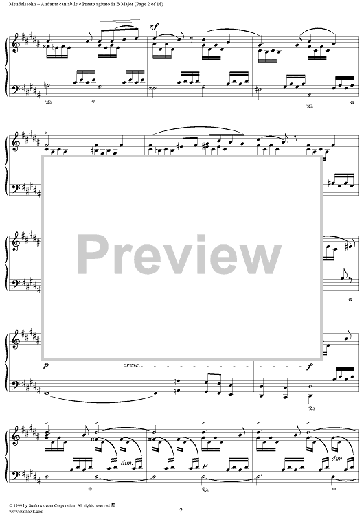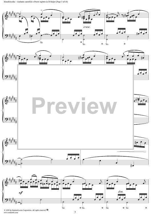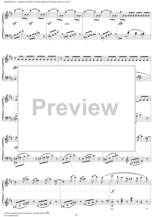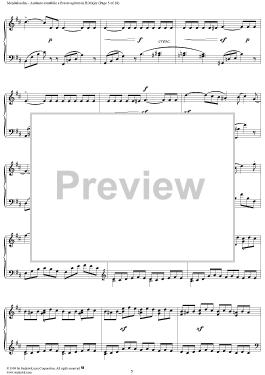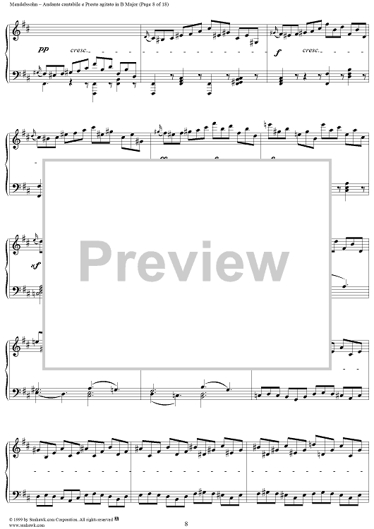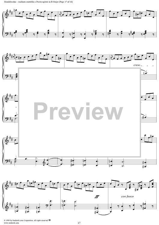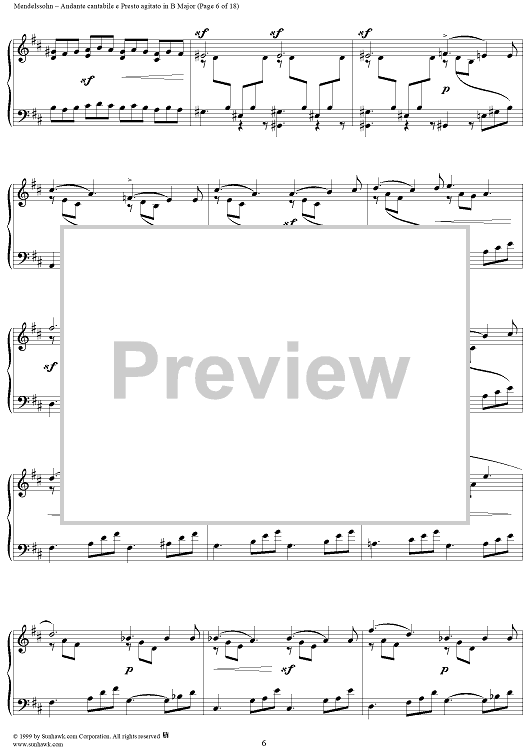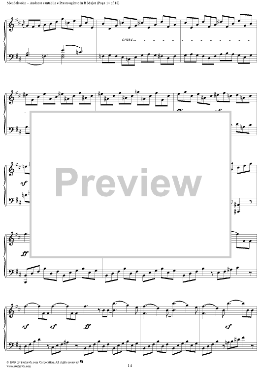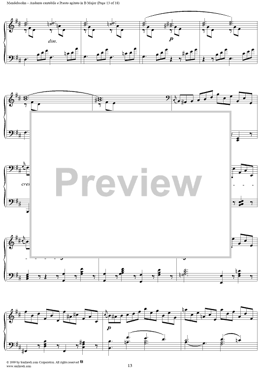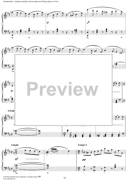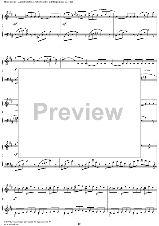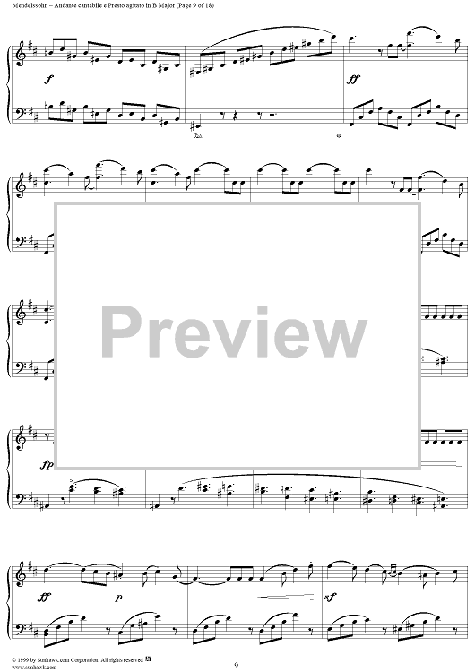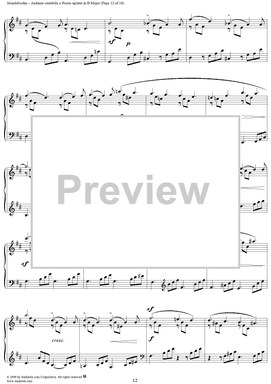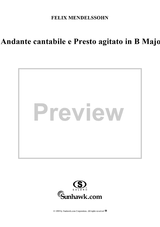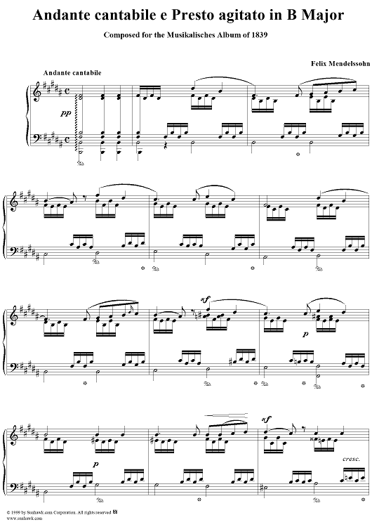 Digital Sheet Music for Andante cantabile e Presto agitato in B Major by Felix Mendelssohn scored for Piano Solo; id:251880