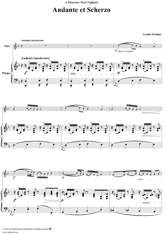 Digital Sheet Music for Andante et Scherzo Score - Piano by Louis Ganne scored for Flute/Piano; id:152671