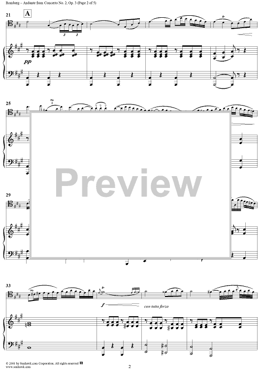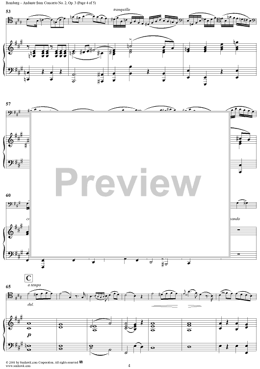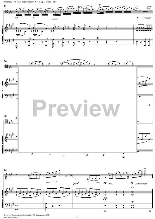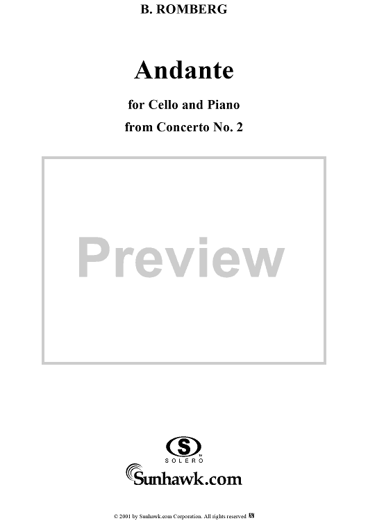 Digital Sheet Music for Andante from Concerto No. 2, Op. 3 - Piano Score by Bernhard Romberg scored for Cello/Piano; id:255331