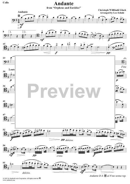 Digital Sheet Music for Andante from "Orpheus and Euridice" - Cello by Leo Schulz, Christoph Willibald Glück scored for Cello/Piano; id:268723