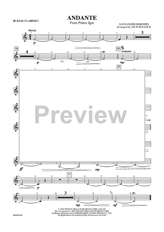 Digital Sheet Music for Andante (from Prince Igor) - B-flat Bass Clarinet by Alexander Borodin, Jack Bullock scored for Concert Band; id:356436