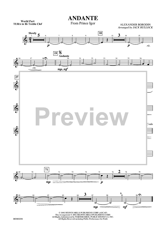 "Andante (from Prince Igor) - B-flat Tuba TC" Sheet Music by Alexander Borodin