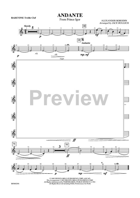 Digital Sheet Music for Andante (from Prince Igor) - Baritone TC by Alexander Borodin, Jack Bullock scored for Concert Band; id:356449