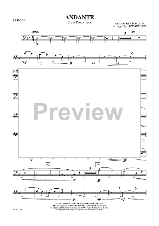 Digital Sheet Music for Andante (from Prince Igor) - Bassoon by Alexander Borodin, Jack Bullock scored for Concert Band; id:356437