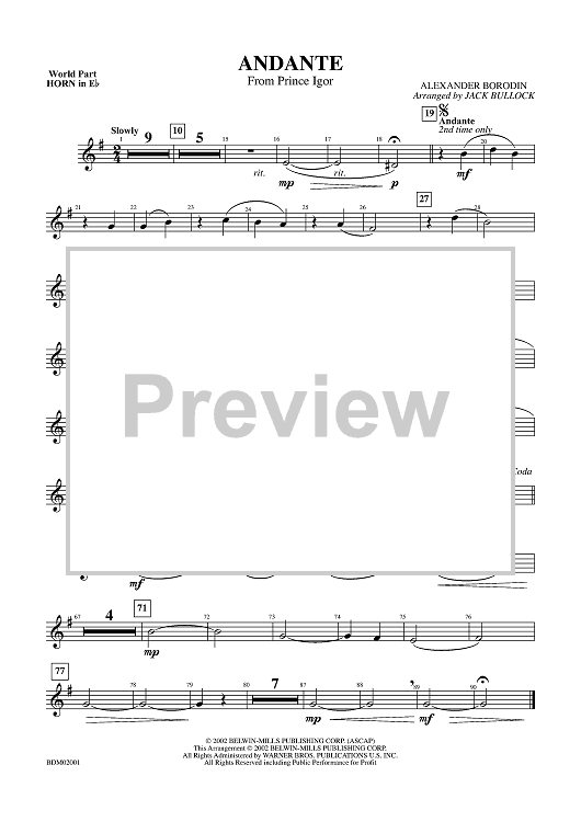 "Andante (from Prince Igor) - Horn in E-flat" Sheet Music by Alexander Borodin