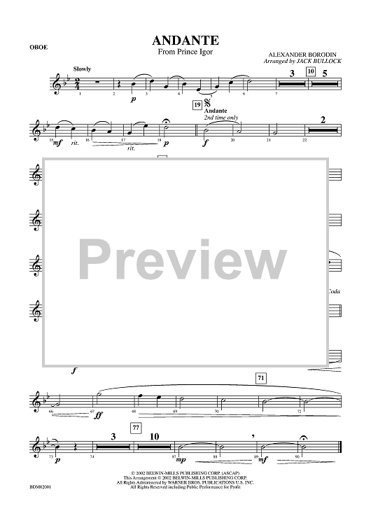 Digital Sheet Music for Andante (from Prince Igor) - Oboe by Alexander Borodin, Jack Bullock scored for Concert Band; id:356433