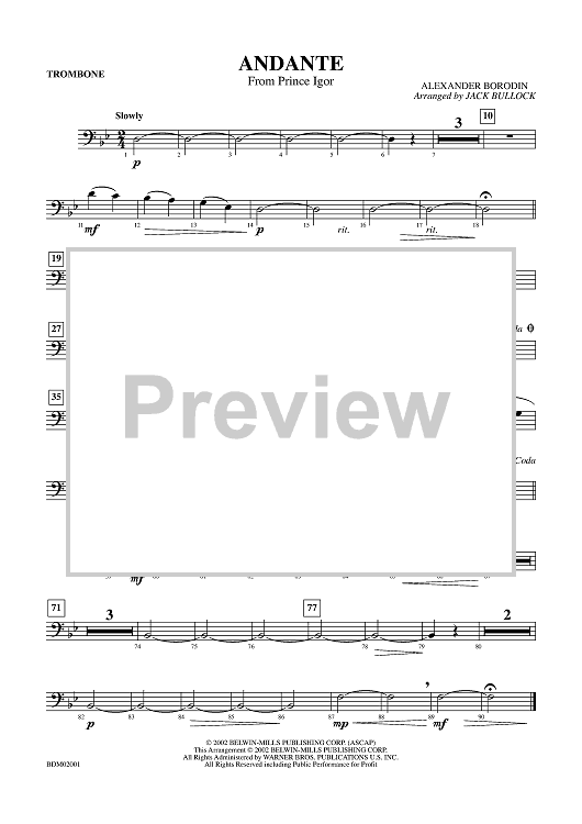 Digital Sheet Music for Andante (from Prince Igor) - Trombone by Alexander Borodin, Jack Bullock scored for Concert Band; id:356445