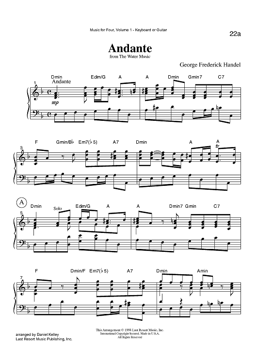Digital Sheet Music for Andante - from The Water Music - Keyboard or Guitar by , George Frideric Handel, Daniel Kelley scored for Instrumental Quartet; id:423695