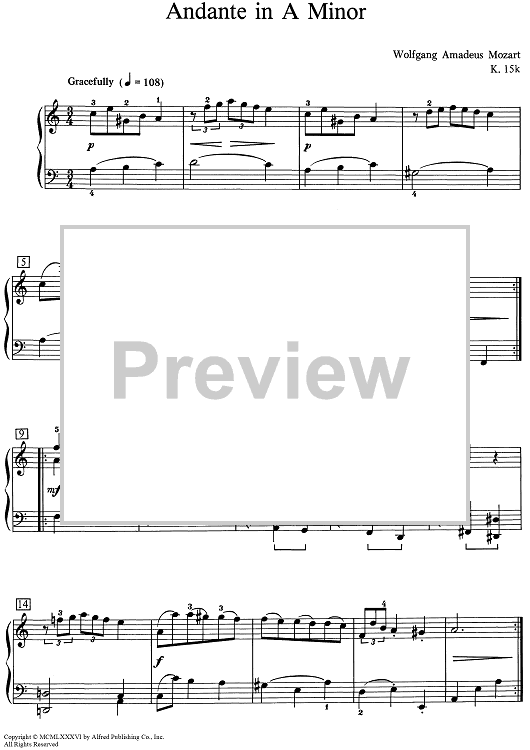 "Andante in A Minor [K. 15k]" Sheet Music by Wolfgang Amadeus Mozart