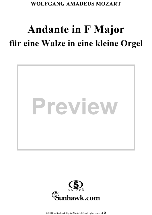 Digital Sheet Music for Andante in F Major (für eine Walze in eine kleine Orgel), K616 by Wolfgang Amadeus Mozart scored for Mechanical Organ; id:292304