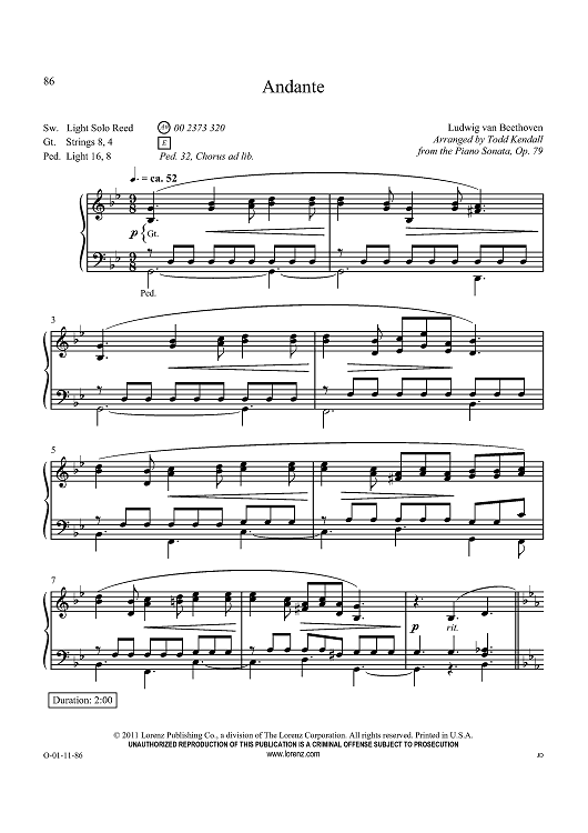Digital Sheet Music for Andante by , Ludwig van Beethoven, Todd Kendall scored for Organ Solo; id:437283