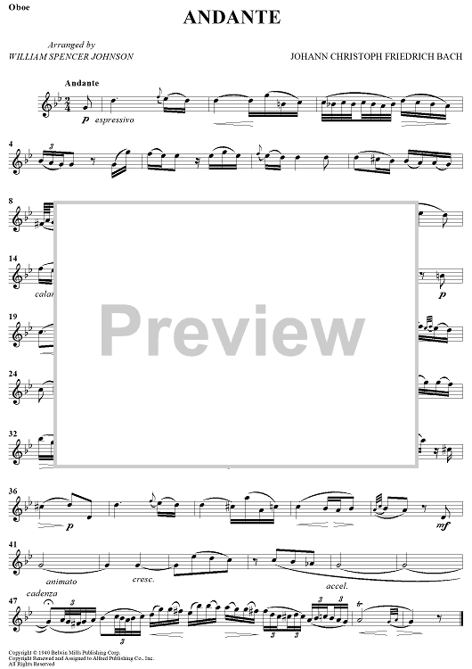 Digital Sheet Music for Andante by William Spencer Johnson, Johann Christoph Friedrich Bach scored for Oboe/Piano; id:438117