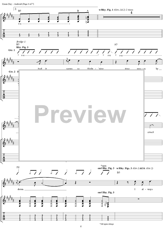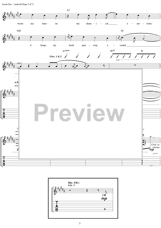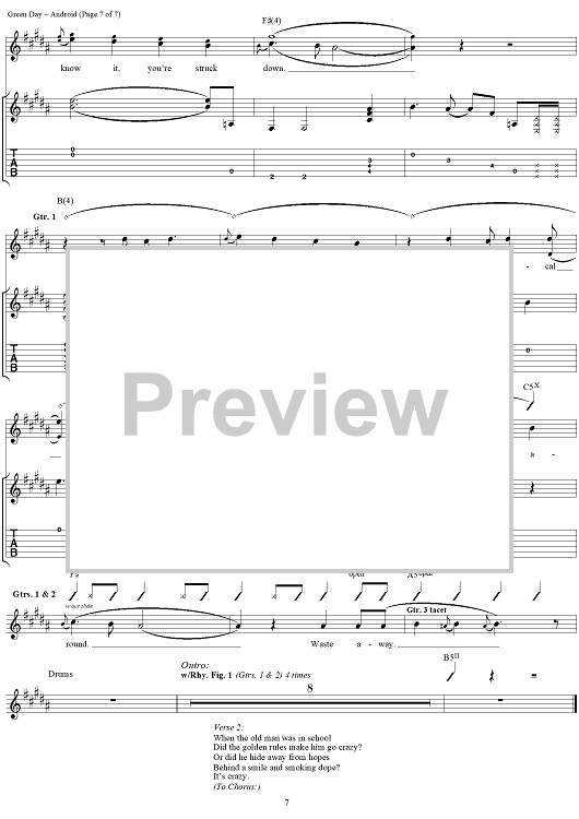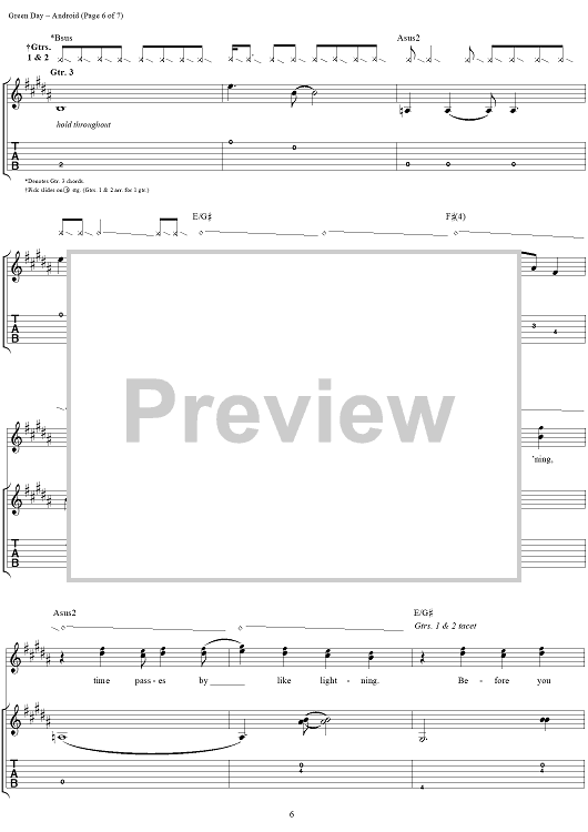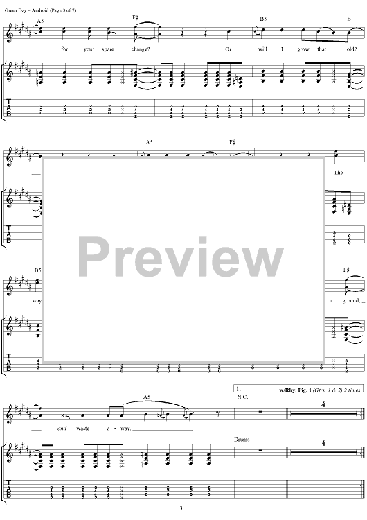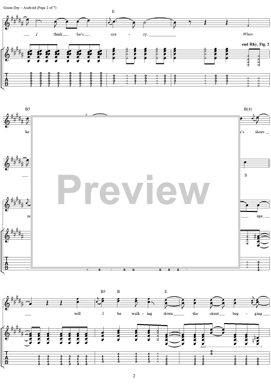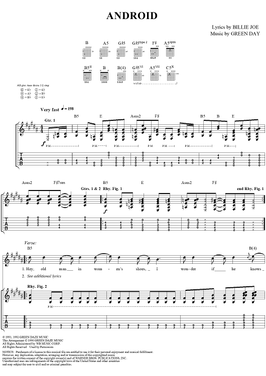 Digital Sheet Music for Android by Billie Joe Armstrong, Green Day scored for Guitar Tab/Vocal; id:112954
