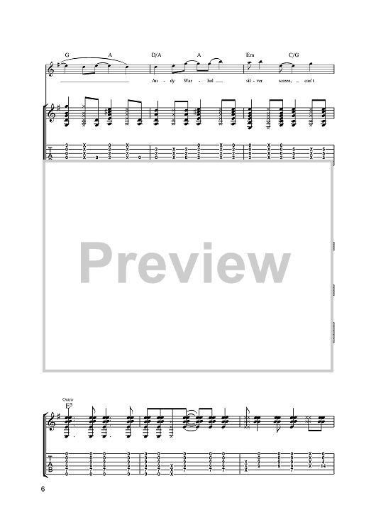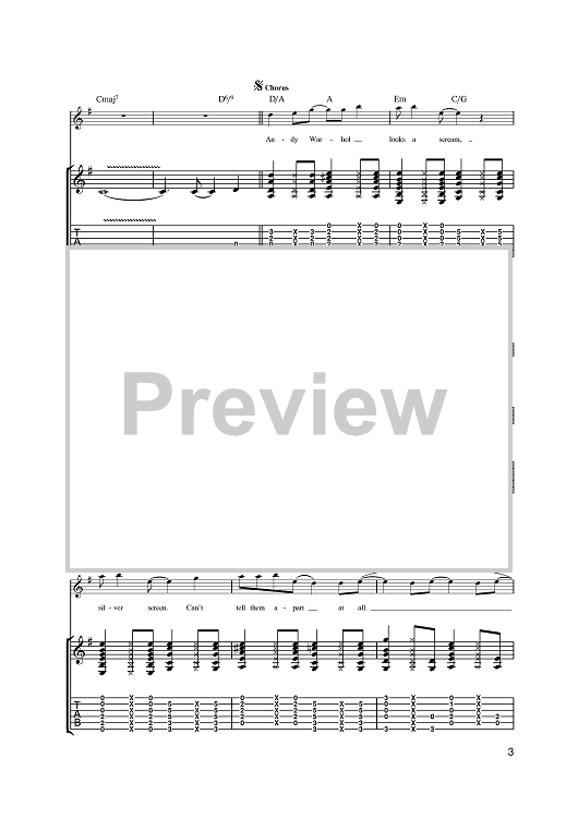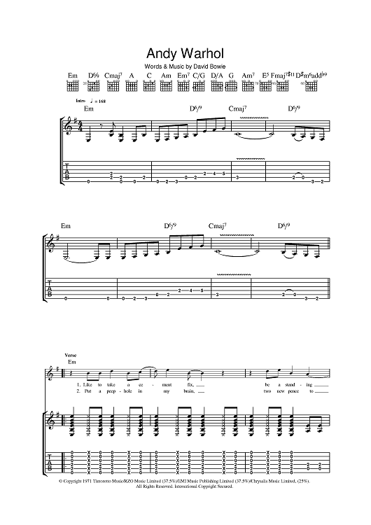 Digital Sheet Music for Andy Warhol by David Bowie scored for Guitar Tab; id:396289