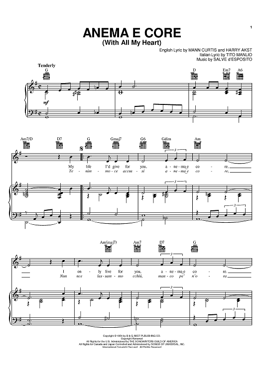 Digital Sheet Music for Ànema E Core (With All My Heart) by Mann Curtis, Harry Akst, Eddie Fisher, Salve d'Esposito, Tito Manlio scored for Piano/Vocal/Chords; id:393085
