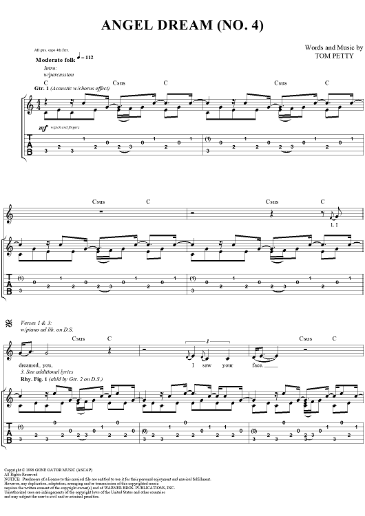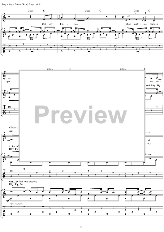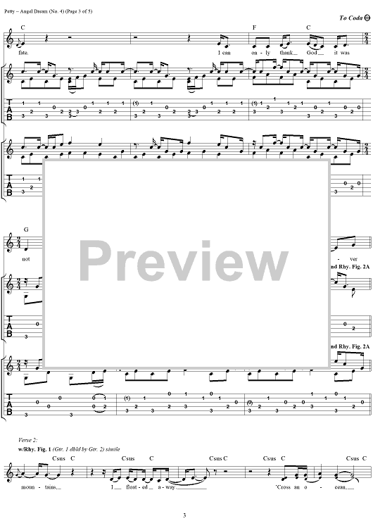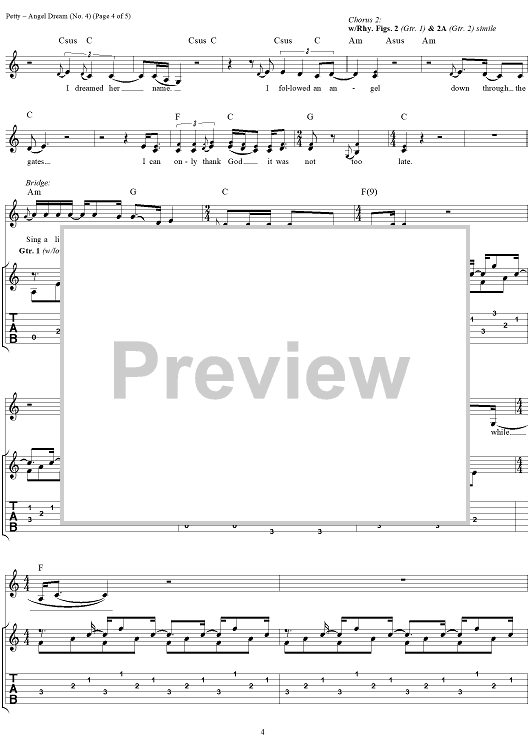 "Angel Dream (No. 4)" Sheet Music by Tom Petty and The Heartbreakers