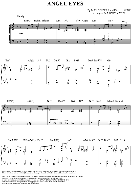 Digital Sheet Music for Angel Eyes by Matt Dennis, Preston Keys, Earl Brent scored for Piano Solo; id:284753