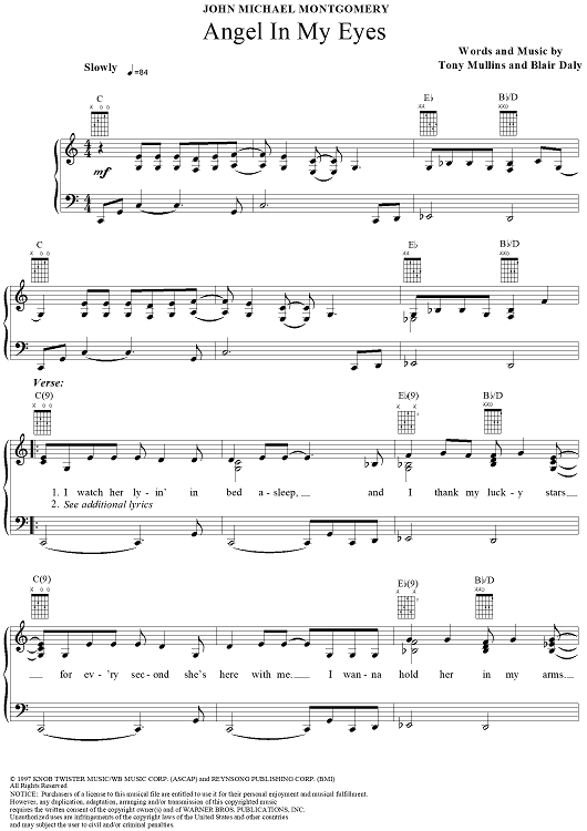 "Angel in My Eyes" Sheet Music by John Michael Montgomery