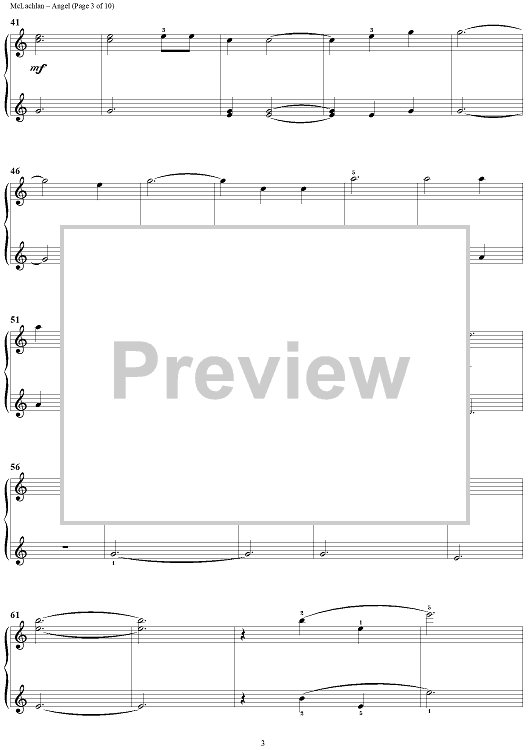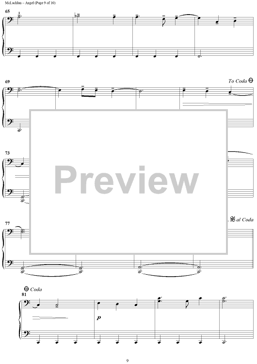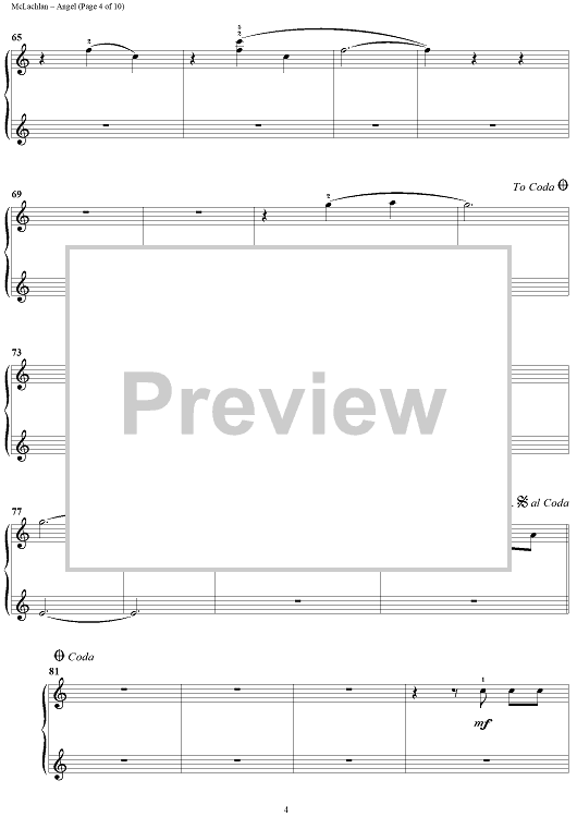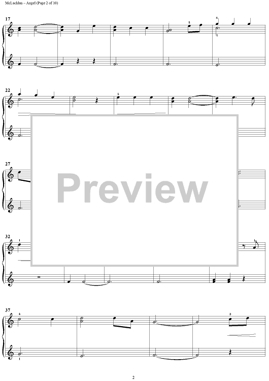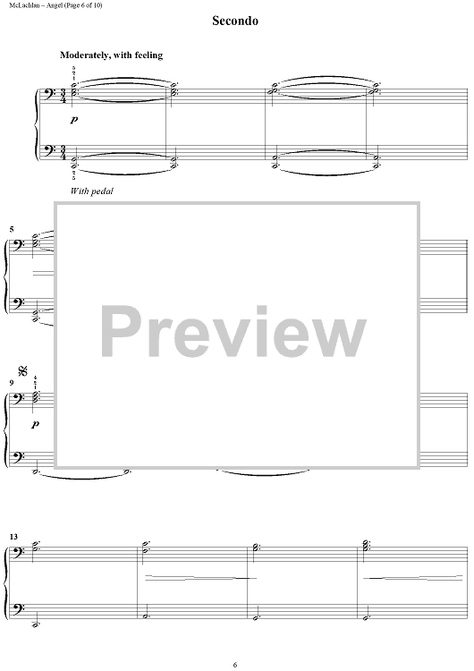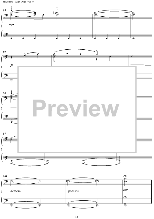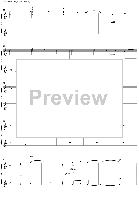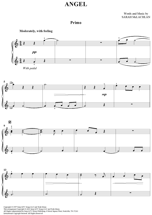Digital Sheet Music for Angel by Sarah McLachlan scored for 1 Piano, 4 Hands; id:372909