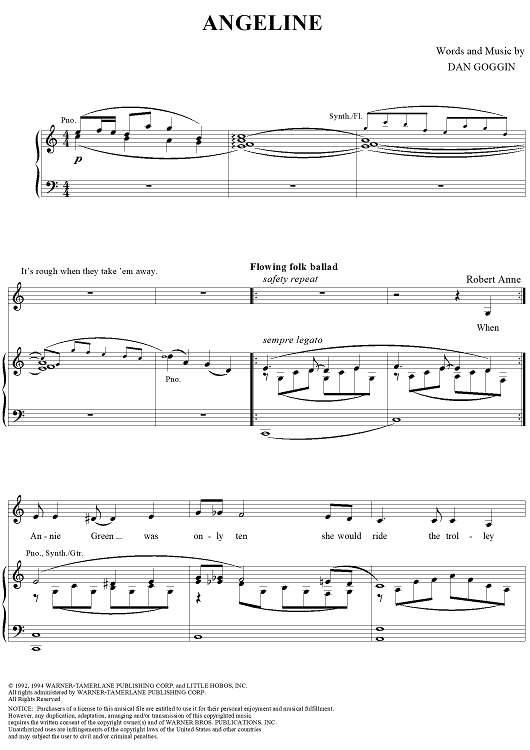 Digital Sheet Music for Angeline by Dan Goggin scored for Piano/Vocal/Chords; id:313399
