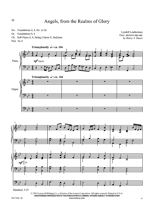 "Angels, from the Realms of Glory" Sheet Music by Henry T. Smart
