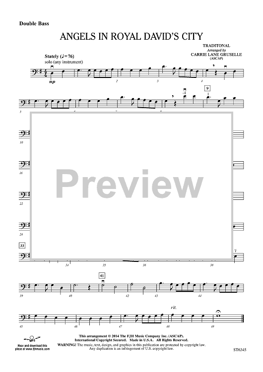 Digital Sheet Music for Angels in Royal David's City - Double Bass by Traditional, Carrie Lane Gruselle scored for Orchestra; id:448130