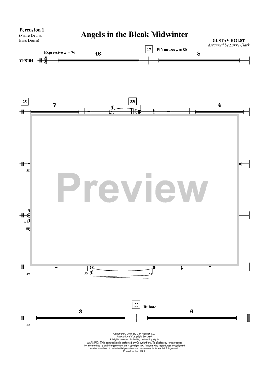 Digital Sheet Music for Angels in the Bleak Midwinter - Percussion 1 by Larry Clark, Gustav Holst scored for Concert Band; id:420961