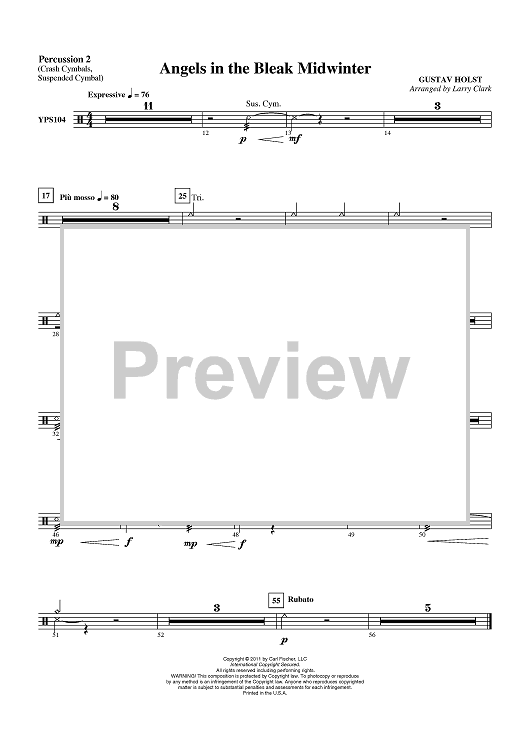 Digital Sheet Music for Angels in the Bleak Midwinter - Percussion 2 by Larry Clark, Gustav Holst scored for Concert Band; id:420962