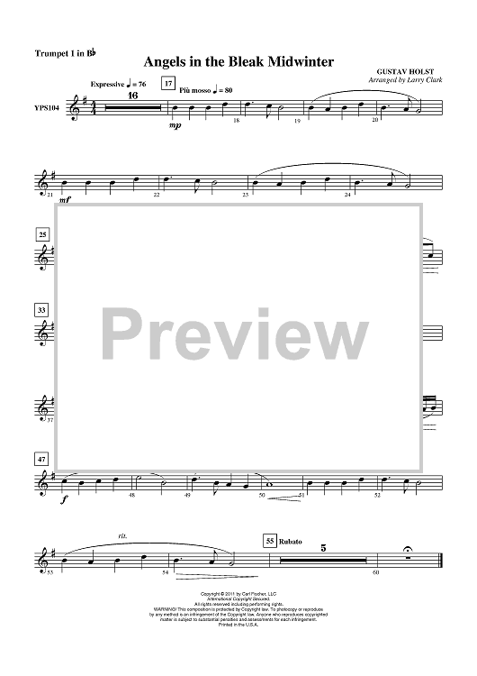 Digital Sheet Music for Angels in the Bleak Midwinter - Trumpet 1 in Bb by Larry Clark, Gustav Holst scored for Concert Band; id:420952
