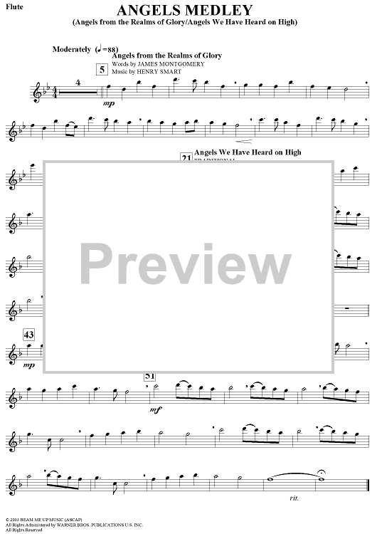 Digital Sheet Music for Angels Medley (In the Realms of Glory/Angels We Have Heard on High) - Flute by Henry Smart, James Montgomery scored for Flute/Piano; id:313085