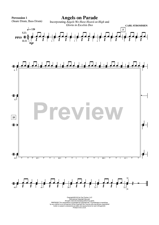 "Angels on Parade - Percussion 1" Sheet Music by Carl Strommen
