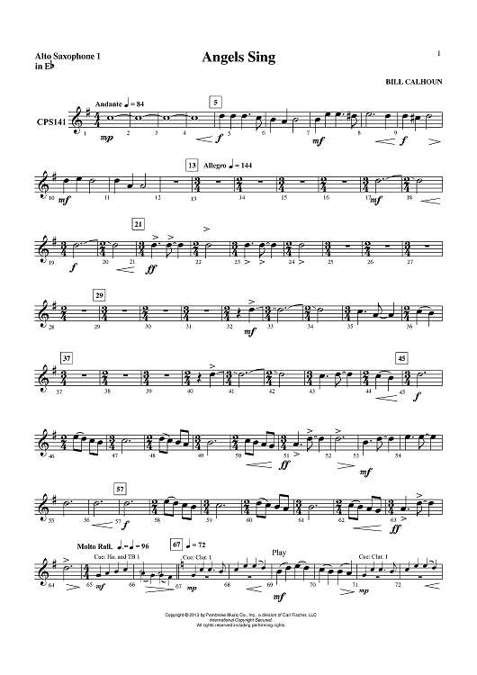 Digital Sheet Music for Angels Sing - Alto Saxophone 1 by Bill Calhoun scored for Concert Band; id:435623