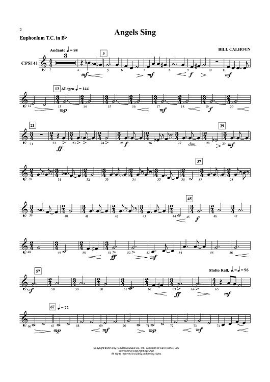 Digital Sheet Music for Angels Sing - Euphonium TC in Bb by Bill Calhoun scored for Concert Band; id:435634