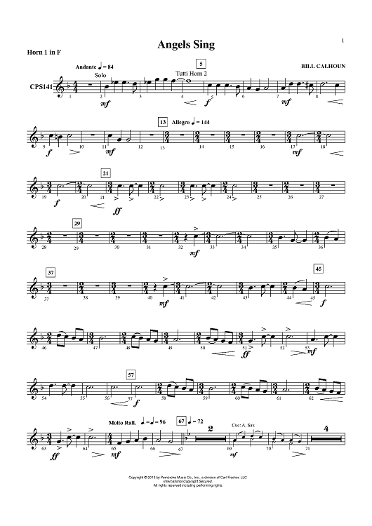 Digital Sheet Music for Angels Sing - Horn 1 in F by Bill Calhoun scored for Concert Band; id:435630