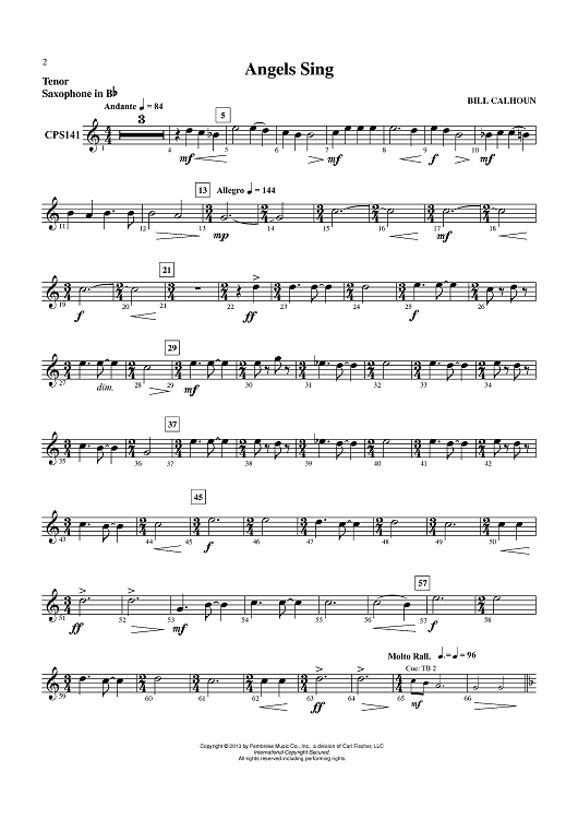 Digital Sheet Music for Angels Sing - Tenor Sax by Bill Calhoun scored for Concert Band; id:435625