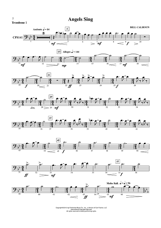 Digital Sheet Music for Angels Sing - Trombone 1 by Bill Calhoun scored for Concert Band; id:435632