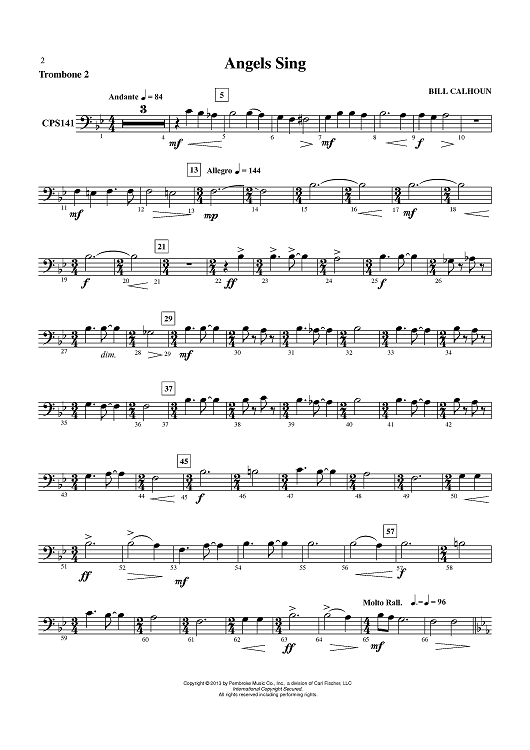 Digital Sheet Music for Angels Sing - Trombone 2 by Bill Calhoun scored for Concert Band; id:435633