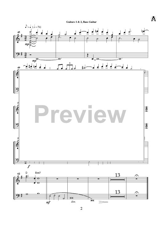 As recorded by Empire Brass, this celebrated piece may be performed with organ substituting for the guitars and bass.