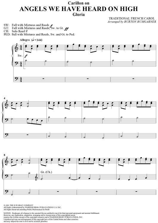 Digital Sheet Music for Angels We Have Heard on High by Burton Bumgarner, Traditional scored for Organ Solo; id:292888