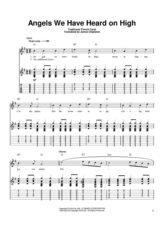 Digital Sheet Music for Angels We Have Heard On High by James Chadwick scored for Guitar Tab; id:374300