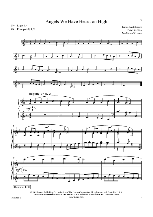 Digital Sheet Music for Angels We Have Heard on High by Traditional French Carol, James Southbridge scored for Organ Solo; id:434667