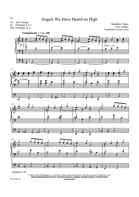 Digital Sheet Music for Angels We Have Heard on High by Traditional French Carol, Humphrey Turner scored for Organ Solo; id:436715