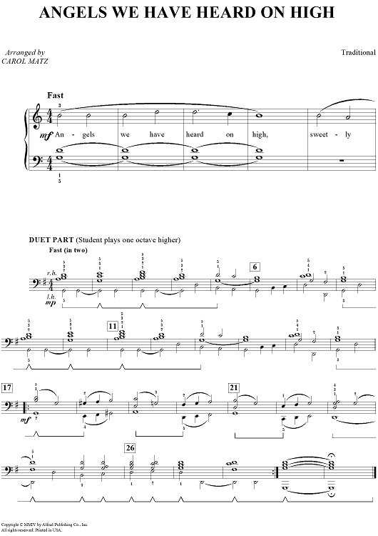 Digital Sheet Music for Angels We Have Heard On High by Carol Matz, Traditional scored for Piano; id:453582