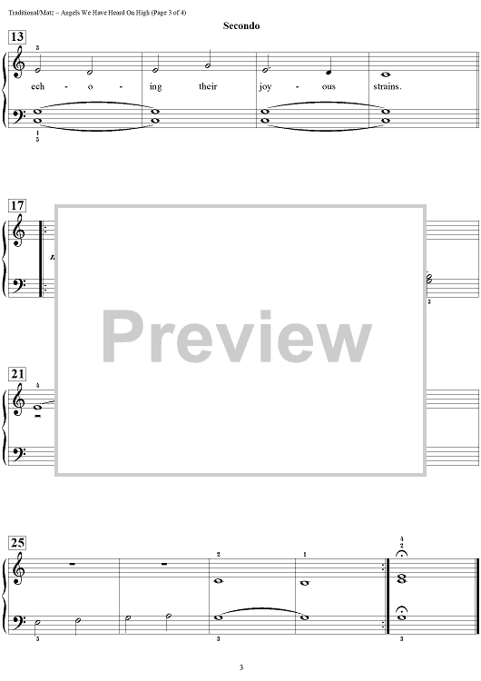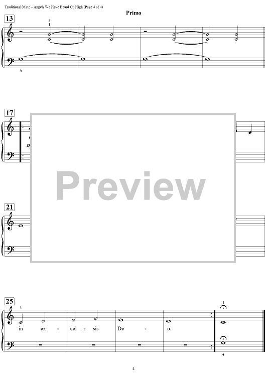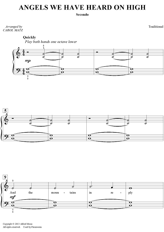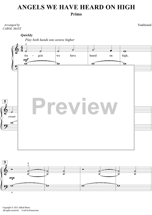 Digital Sheet Music for Angels We Have Heard on High by Carol Matz, Traditional scored for 1 Piano, 4 Hands; id:454098