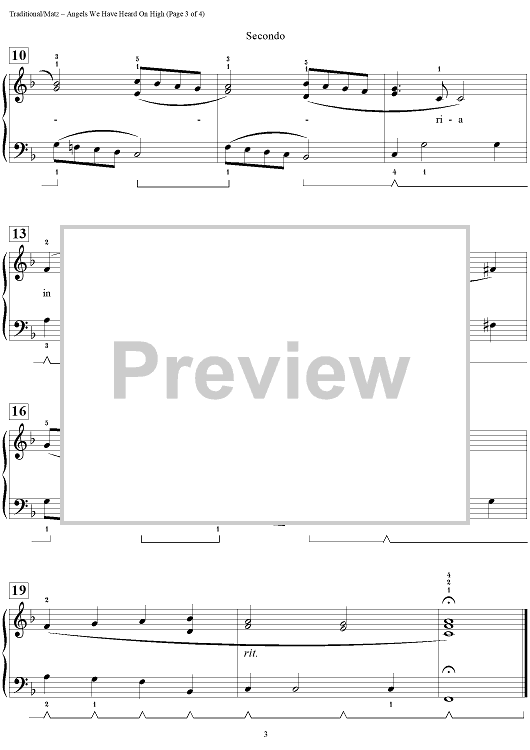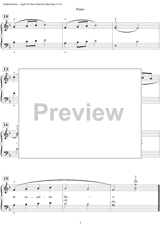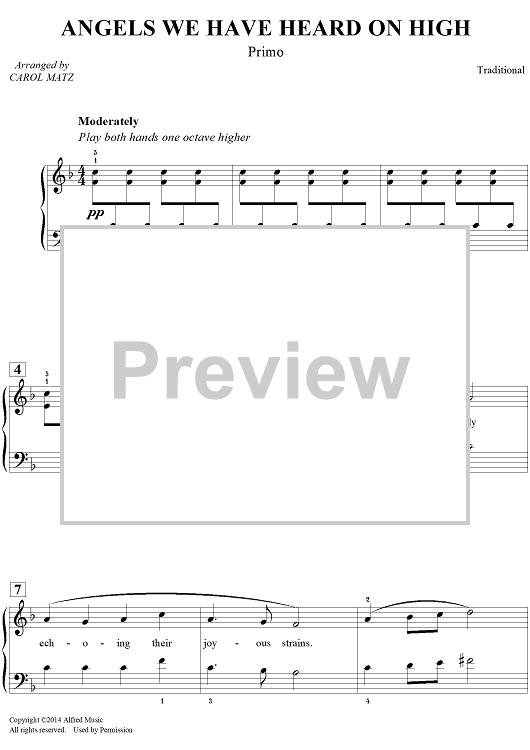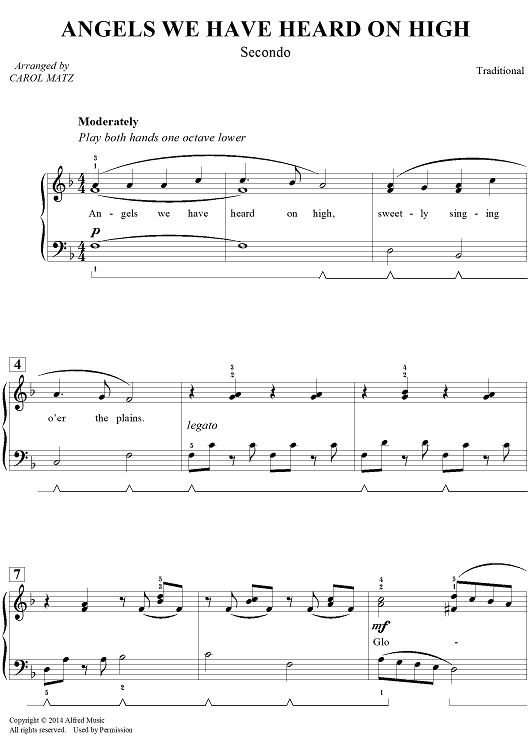 Digital Sheet Music for Angels We Have Heard On High by Carol Matz, Traditional scored for 1 Piano, 4 Hands; id:454174