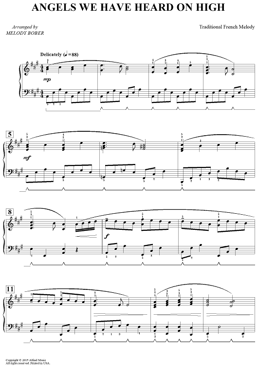 Digital Sheet Music for Angels We Have Heard On High by Traditional French Melody, Melody Bober scored for Piano; id:458953