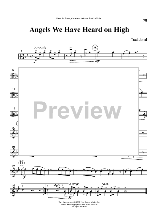 Digital Sheet Music for Angels We Have Heard on High - Part 2 Viola by , Traditional, Daniel Kelley scored for Instrumental Trio; id:424863