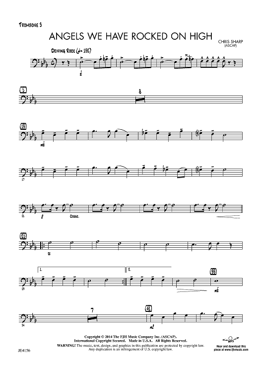 Digital Sheet Music for Angels We Have Rocked on High - Trombone 3 by Chris Sharp scored for Jazz Ensemble; id:446677